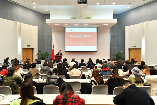 为进一步加强我校学生德育工作,提高思政教育工作水平,3月3日,学校在松江校区召开2021年学生工作部署会。党委副书记、纪委书记王云骏出席会议,党委宣传部、党委学生工作部、学生就业服务中心、校团委等相关部门正副职、各学院党组织副书记、全体学工干部和专职辅导员与会。
