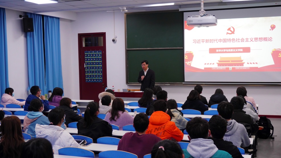 自2019年秋季学期伊始,我校作为上海15所试点高校之一,率先开设“习近平新时代中国特色社会主义思想概论”课。在师资配置上,学校组建了以党委书记、校长、院士、国内著名专家、马克思主义学院教授为主体的强大授课团队,通过集体备课、集体研讨,动态完善授课内容,不断优化授课模式,合力提升育人效果。