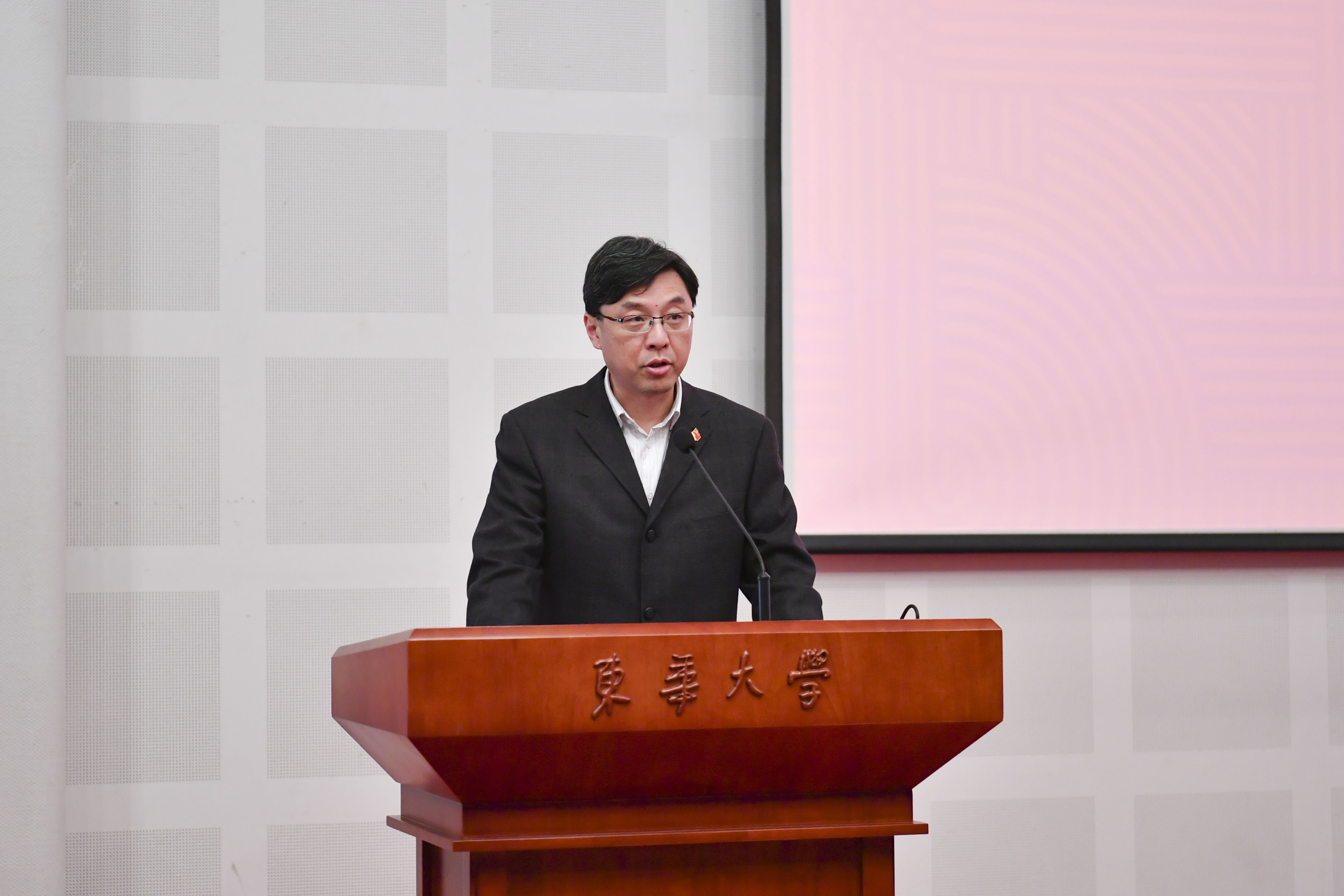 二级单位党组织正副书记、正副党员院长,机关部处、业务部门、工青妇副处级及以上党员干部,学校关工委讲师团老同志,全体教职工党支部书记、专职党务干部、思政课教师、专职辅导员等参加会议。除松江校区主会场外,延安路校区同步开设有视频分会场。
