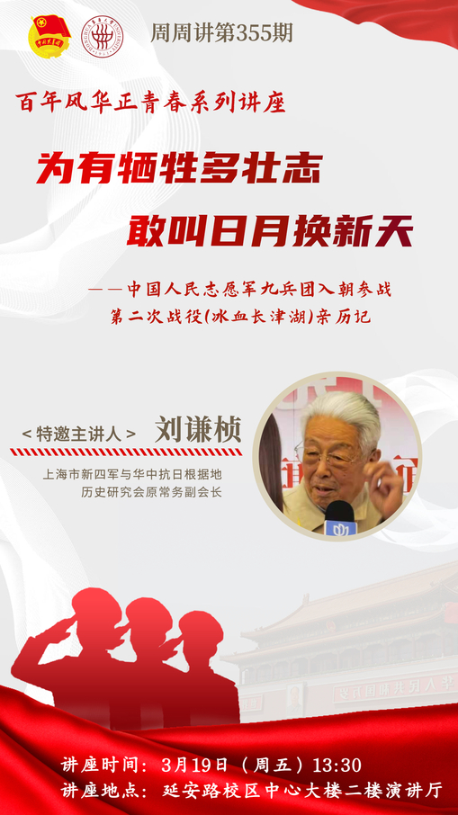 本期周周讲我们邀请了上海市新四军与华中抗日根据地历史研究会原常务副会长刘谦桢同志,也是抗美援朝战争的亲历者,为我们讲述那段充满人民不屈不挠精神的历史。