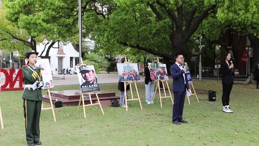 服装与艺术设计学院辅导员宋明亮和国旗护卫队延安路校区国旗班宣讲团的成员通过“坚持与祖国同行,绽放青春绚丽之花”情景党史教育微课,讲述百年峥嵘岁月里党在奋斗历程中形成的脱贫攻坚精神和伟大抗疫精神。宋明亮结合自身教育扶贫经历,引导学生将小我融入大我,为建党百年和建校70周年献礼。宣讲团的同学分享2020年感动中国人物张桂梅的故事,讲述我校定点扶贫的40余位云南盐津籍学生从大山走进东华、用知识改变命运的故事,鼓励同学用行动践行崇高理想和追求。国旗班队长张子巍在国旗下向全体师生发出全民国家安全教育的倡议,呼吁大家树立忧患意识,增强责任感与使命感;提高法治意识,做知法、守法公民;从自身做起,自觉做国家安全守护人。
