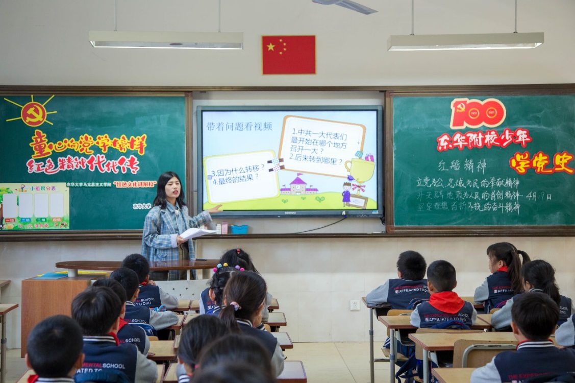 学院面向东华附校九个年级,推出“党史宣讲进附校”系列音频党课,由青年教师主讲,内容涵盖红船精神、抗日精神、长征精神等10讲课程,通过附校“红领巾”广播站进行播放,用生动的话语讲述中国共产党近百年来波澜壮阔、气势恢宏的如歌画卷。4月19日,推出音频党课第一讲,获得附校师生的一致好评。