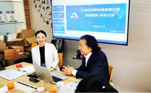 招聘活动中,松江区人才服务中心负责人结合松江区悠久的历史和发展现状,介绍了关于落户、人才公寓、人才租房补贴、优秀青年大学生激励等毕业班学生关注的人才政策。上海艾深斯科技有限公司负责人通过宣讲和产品实物展示相结合的方式全面介绍了公司概况、研发领域、发展愿景及招聘需求。两名校友代表结合个人发展情况与参会学生进行了深入交流。宣讲会后,与会20余名同学分组进行了现场面试。