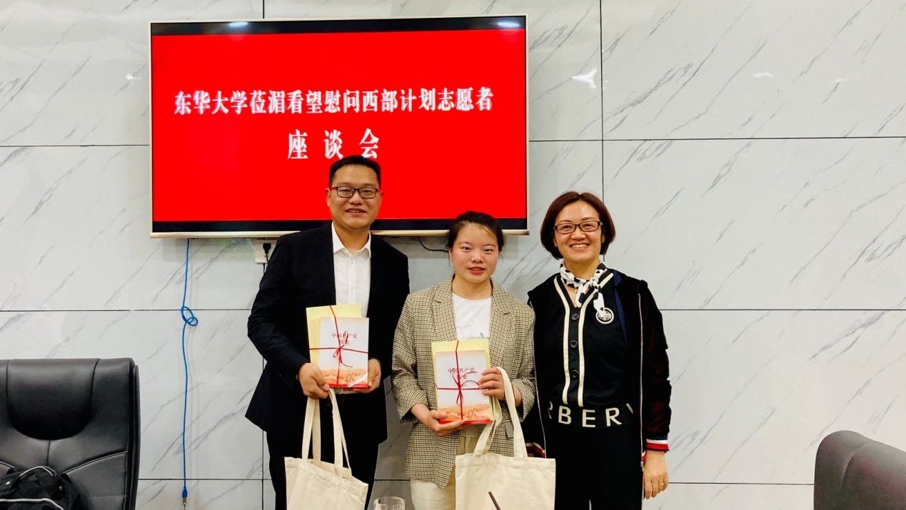 座谈会上,刘淑慧与研支团成员亲切交谈。从所学专业到任教学科,从工作目标到未来规划,详细全面了解了他们的工作生活情况。刘淑慧对汇川区区政府、遵义市第三十五中对3位志愿者的关心、重视及肯定表示感谢,对汇川人民投身易地扶贫搬迁工作、乡村振兴建设所做的努力表示敬佩。她指出,近一年时间,3位同学用激情和事业心对待支教工作,承担起了人民教师的责任,同时利用自身学科优势,结合学生需求,在孩子们的心中种下希望的种子。她勉励研支团成员,要珍惜支教生活的每一分每一秒,做好教育帮扶工作,要用心、用情、用自己的所学为服务地做好服务,为汇川教育、国家乡村振兴事业贡献东华力量。