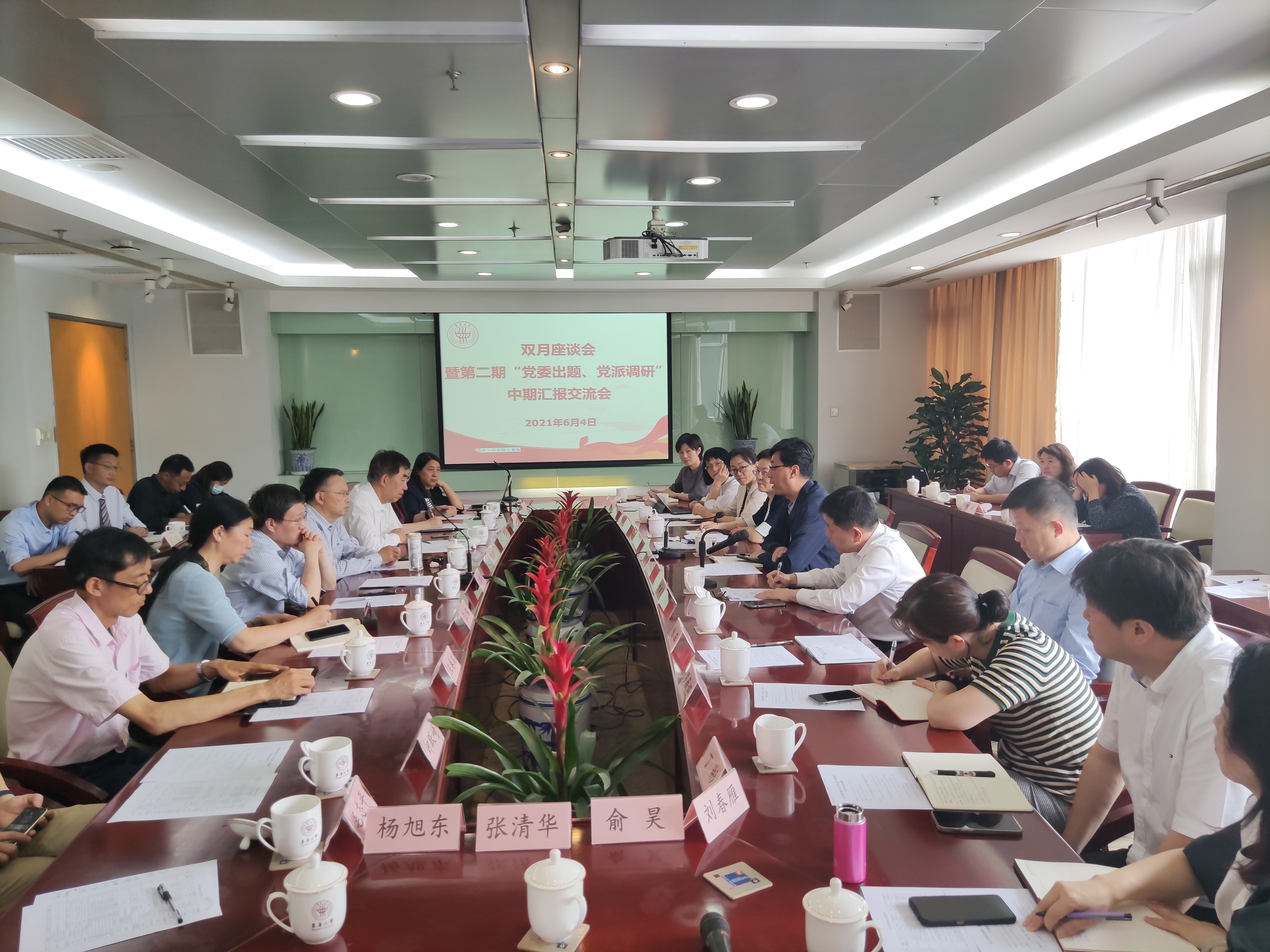 6月4日上午,学校在松江校区召开双月座谈会暨第二期“党委出题、党派调研”课题中期汇报交流会。党委书记刘承功,校长俞建勇,党委副书记崔运花,副校长、欧美同学会会长陈革,党委常委、统战部部长朱英,组织部部长林嵘,党办、校办、发展规划处、科研院、研究生院、产业联合党总支、教务处、人事处、学生处等相关部处负责人与各民主党派、统战团体负责人及各级人大代表、政协委员出席会议。会议由朱英主持。
