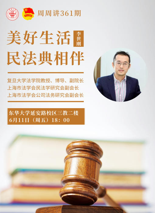 讲座内容2020年5月28日,十三届全国人大三次会议表决通过了《中华人民共和国民法典》,自2021年1月1日起施行。《民法典》作为新中国历史上第一部以“典”命名的法律,是新中国改革开放探索经验的新凝练,囊括了人一生中所有的民事行为,是民事权利的宣言书和保障书,是中国法治事业发展的新高度。《民法典》讲了什么?又能够评判哪些事情呢?本期周周讲将带领我们找寻生活中《民法典》的痕迹,感受其在生活中的巨大作用。