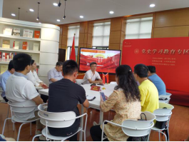 6月8日,环境学院建环系党支部与国网上海电力公司闸北发电厂部室第二党支部共学共建,在延安路校区图书馆的党史学习教育专区,联合开展了“校企携手学党史,产教协同育英才”的党史理论学习,共同探讨支部共建在校企科技合作和协同育人领域的引领作用。两个支部共同参观了我校的纺织服饰博物馆展暨党的一大纪念馆分馆,进一步通过博物馆展出的珍贵的党史资料,深入开展党史学习。闸电厂部室二支部书记钱东、副书记顾今佳等7位党员同志与建环系党支部全体党员教师及群众代表共27人参加了本次活动。