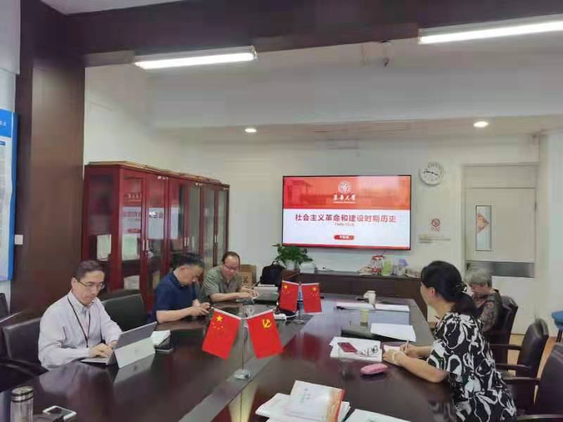 (学院中心组成员分专题进行党史学习研讨,图为常务副院长韦联福领学)