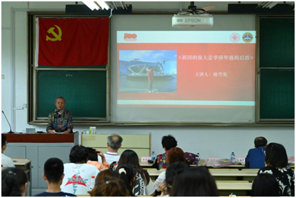 活动中,顾莉琴老师作《学习党的光辉历史,坚定理想信念》主题党课。她谈到,中国共产党成立百年来,始终紧紧依靠人民,完成了新民主主义革命,实现了民族独立、人民解放;完成了社会主义革命,确立了社会主义基本制度;进行了改革开放新的伟大革命,发展了中国特色社会主义。她还通过方志敏、夏明翰、江姐等革命先烈的事迹,深入阐释了信仰的内涵,激励同学们不断坚定理想信念。陈雪英老师作为一名老归侨,同时是侨联名誉主席,她以“祖国的强大是华侨坚强的后盾”为题,通过自己亲身经历,分享了新中国成立以来特别是改革开放带给中国的翻天覆地的变化,深刻阐明了中国共产党诞生的必然性和肩负的历史使命,鼓励同学们要主动围绕国家战略,从服务国家、服务人民的角度做真正有价值的科研,在实干中成就青春梦想,书写自己的精彩人生。