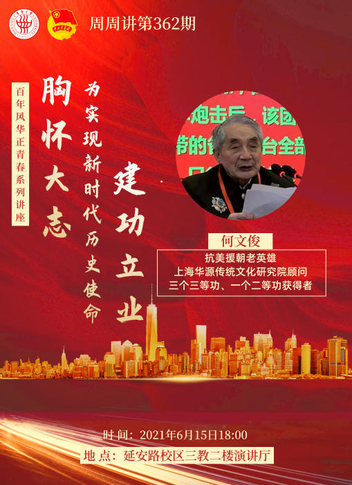 何文俊 上海华源传统文化研究院顾问,抗美援朝老英雄,在朝鲜战场上获得过3等功3次、2等功1次,在原苏联莫斯科大学留学时曾被毛主席接见,聆听过毛主席关于“世界是你们的也是我们的”著名演讲;