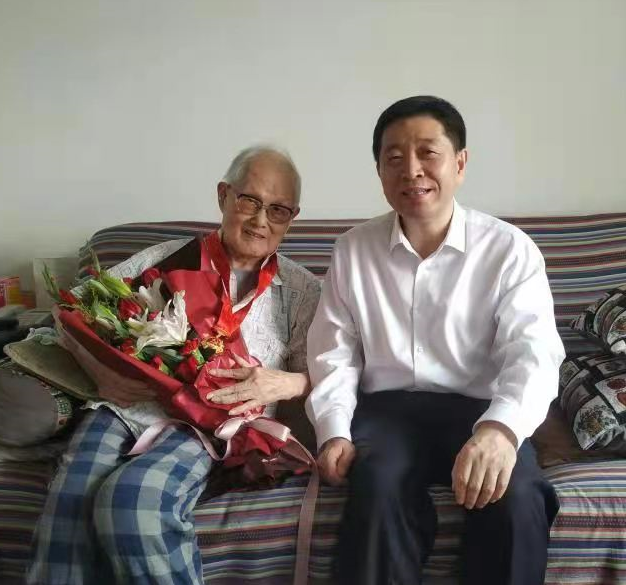 (刘承功慰问离休干部刘洁、老党员沈焕明并为其颁发纪念章)