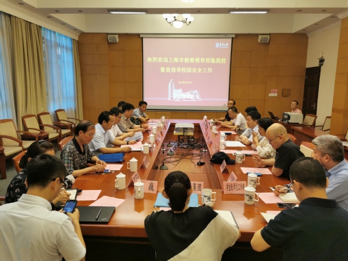 6月21日,上海市教育卫生工作党委副书记闵辉、上海市后勤协会会长李瑞阳、上海市教委后勤保卫处处长张旭等一行莅临我校督查指导校园安全工作并召开座谈会,校长俞建勇、副校长李炜出席,学校职能部门负责人等参加。座谈会由李炜主持。