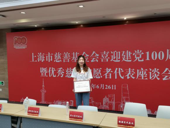 6月26日,上海市慈善基金会喜迎建党100周年暨优秀慈善志愿者代表座谈会召开,全市123名优秀志愿者、志愿者团体及志愿服务组织者获表彰。我校“智力助残”志愿者服务队获“优秀慈善志愿者”称号。上海市副市长彭沉雷,上海市慈善基金会理事长钟燕群、荣誉理事长冯国勤等出席座谈会。