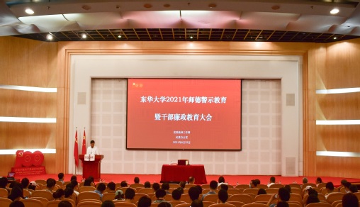 6月29日下午,我校2021年师德警示教育暨干部廉政教育大会在松江校区图文信息报告中心第一报告厅召开。党委副书记、纪委书记王云骏出席,各二级单位党组织、机关部处、业务部门和工青妇负责人,校师德建设委员会、二级单位师德建设工作小组成员,教工党支部书记,全体专兼职辅导员以及2021年新教职工入职培训班全体成员参加会议。大会由人事处处长兼党委教师工作部部长、党委组织部副部长张耀鹏主持。