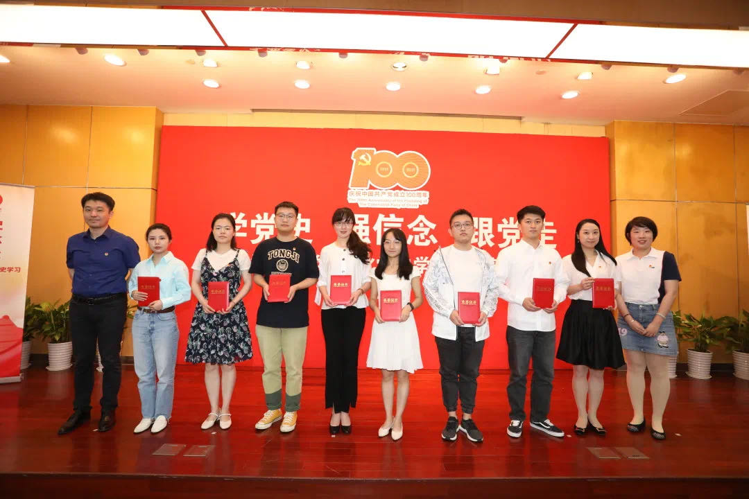 (我校获奖代表在上海青年学生深化党史学习教育座谈会上领奖)