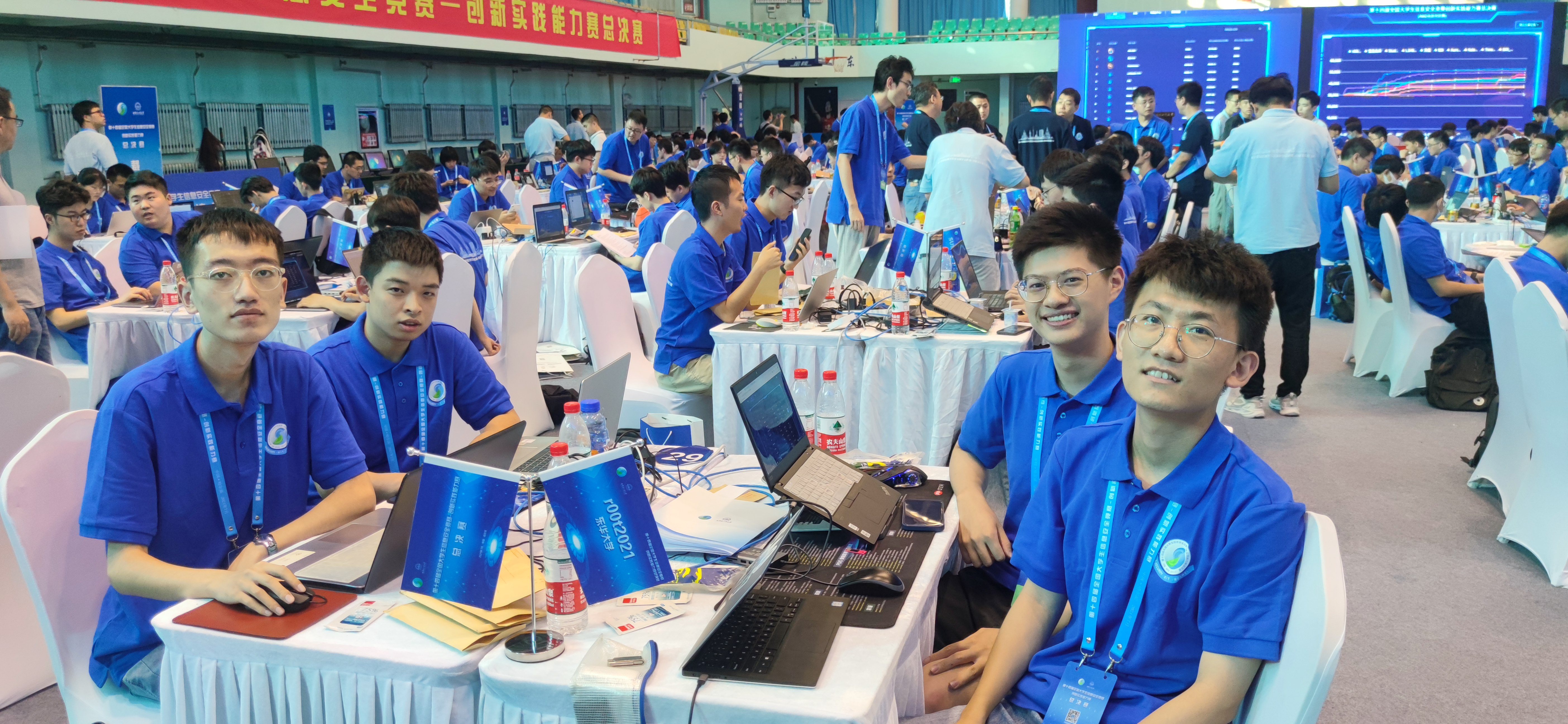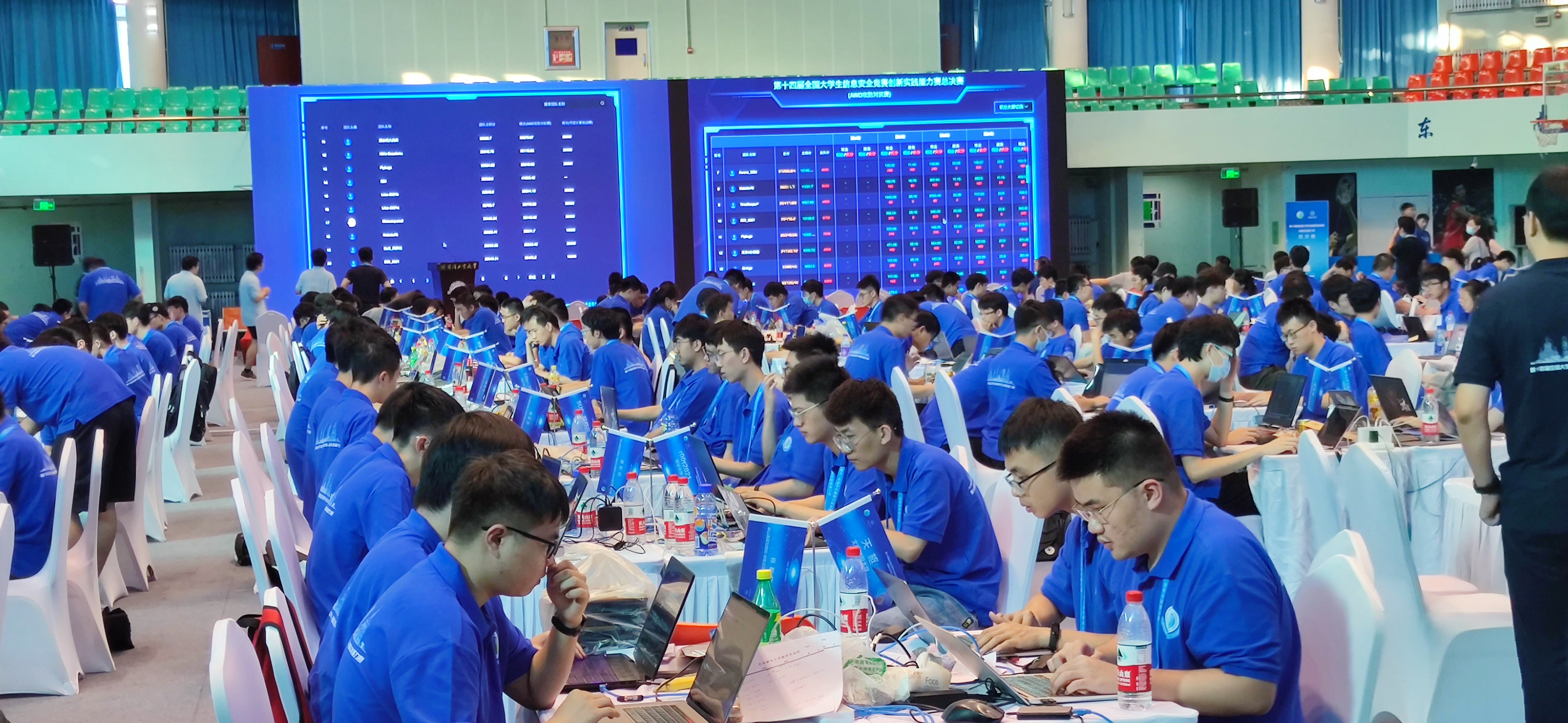 我校共派出两支队伍参赛,在赛区选拔赛中,“R00t-2021”战队勇夺一等奖,顺利挺进决赛,由本科二年级学生蔡澍昊、冯紫晴、赵元博、韩昆鹏组成的“r0v0t”战队则获得三等奖。决赛首日中,“R00t-2021”发挥自身技术优势,连续数个项目第一个答题成功,总积分排名第一。在第二天的赛事中,尽管自主命题赛项中裁判评分不高,总分一度下滑,但在剩余赛项中同学们依然敢打敢拼,沉着应战,凭借技术实力奋起直追,最终以总积分第三名的排名获得总决赛特等奖,这也是我校继2019年首获该赛事一等奖后的再次突破。