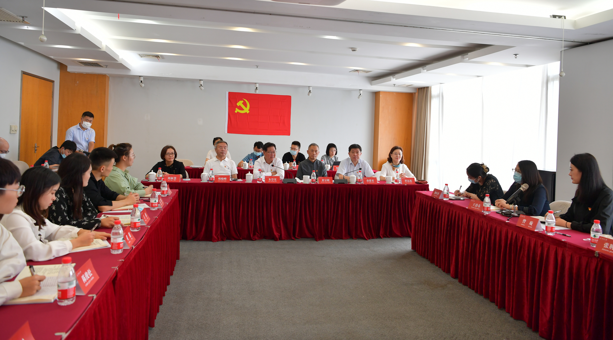 9月13日,我校马克思主义学院马理硕党支部在松江校区召开党史学习教育专题组织生活会。教育部党史学习教育高校第六巡回指导组组长朱崇实,副组长韩晓峰、黄宗明等一行5人来校调研指导。校长、党委副书记俞建勇,党委副书记刘淑慧、崔运花,党委常委、党委宣传部部长任晓杰以及相关职能部门、马院负责人列席会议。专题组织生活会由马理硕党支部书记曾璇主持。