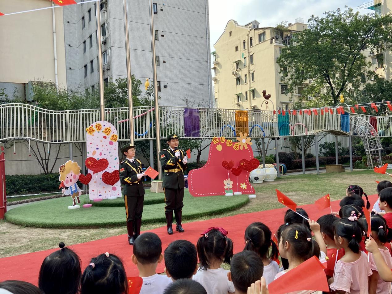 国旗护卫队党支部的同志通过现场升旗仪式和队列表演浸润式爱国主义展示,以及“微课堂”的形式,向小朋友们讲述关于国旗、国庆节小知识等升国旗仪式、现场展示、实地宣讲等方式,与小朋友们进行了精彩纷呈的互动,给小朋友们幼小的心灵埋下了梦想的种子,产生对军装的向往。本次共建活动也受到了幼儿园师生的大力支持,并表示希望与国护队有长期持续的爱国主义教育活动的共建。