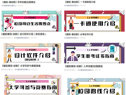 新生校园攻略、萌新大数据、疫情防控指南、防诈骗案例…在疫情防控常态化阶段,学校易视传媒中心精心准备了丰富多彩的“易见倾新”线上大礼包,积极通过易班在线开展新生入学教育,实现了新生入学教育”前置”。在“新生教育系统”中嵌入基本信息、学事项查询及学生手册、垃圾分类及安全教育常识自学功能,帮助新生在入校前开启大学生活、领略大学魅力。依托易视传媒抖音平台及微信视频号首发学生自主设计的新生文化衫,充分展现学生的设计创意及青春活力,为新生递上崭新的校园“见面礼”。推送“新生大数据”专帖,深度分析挖掘新生数据亮点,呈现“有趣”又“有料”的新生大数据“独家”解读。各学院也积极开拓新生入学教育网络阵地,在创新网络思政工作上各显神通。服装与艺术设计学院通过迎新系列贴、书籍盲盒、导师导生易班答疑、网络宣讲等活动,为2021级新生营造浓郁迎新氛围,开启新生青春飞扬的校园生活。机械工程学院利用网络阵地立体式推进迎新工作,在易班开辟“念伊廿一”迎新专栏,在B站平台开展“校园直播巡游”,立足抖音短视频平台持续发布“史上最全东华攻略”“揭秘网红月饼背后的学生设计团队”等创新短视频。化学化工与生物工程学院利用易班、B站和视频号等平台,开设花生仁迎新直播看东华,录制系列主题微课,优化“易班+迎新”高质量内容供给,深度围绕百年党史和七秩校史引领师生爱国荣校,把新生入学教育搬到线上、做在前头。材料科学与工程学院借助易班平台推出“材易小贴士”专栏,新生入学当天推出“‘易’起游校园”活动,助力新生扫除初入校门的“未知障碍”。上海国际时尚创意学院借助易班、微信等网络新媒体平台发布新生攻略,举办创意T恤设计大赛,并将获奖作品制作成为新生T恤,发放给每位新生。