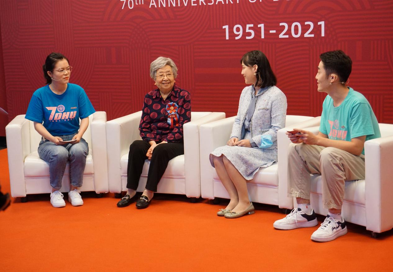 在庆祝建校70周年大会上,有一个身影让无数东华人倍感亲切、为之动容。她就是“七一勋章”获得者、全国首批劳动模范、60级校友黄宝妹。为实现“全国人民穿好衣”的梦想,黄宝妹在平凡岗位干出了不平凡业绩。今年已经90岁高龄的她,也是返校校友中年岁最高的。