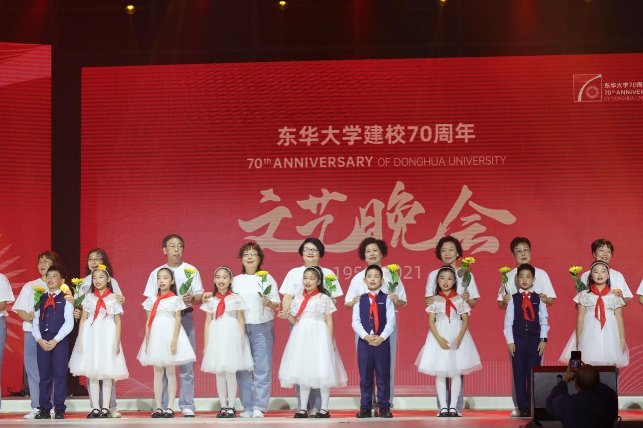 10月16日晚,建校70周年文艺晚会在松江校区体育馆举行。晚会由《衣尚东华》和《唱响东华》两个部分组成,500余名师生同台演出,展现了东华的历史积淀与青春活力。其中,《衣尚东华》由服装与艺术设计学院师生团队原创设计并演出;《唱响东华》由校团委牵头、人文学院传播系团队策划创作,在校生、校友代表、教工合唱团、退休教工合唱团、东华附校合唱团、各大艺术类社团、舞蹈团等联合演出。