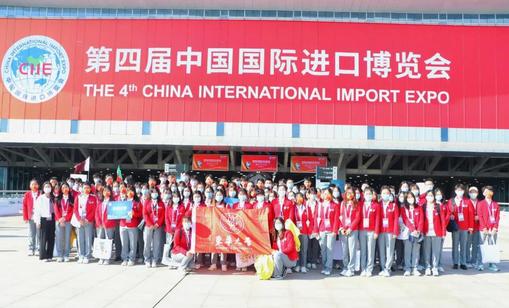 11月4日,第四届中国国际进口博览会开幕式在上海举行。据悉,一共派出123名进博会志愿者,他们来自13个学院,分别服务于新闻中心、翻译处、论坛组等岗位。他们秉持着“奉献、友爱、互助、进步”的志愿精神,在进博会讲好东华青年故事。