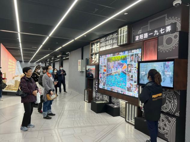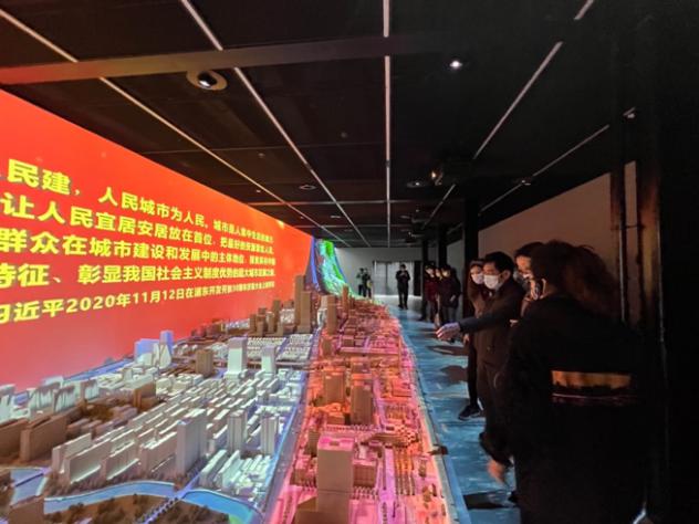 上午,师生一行乘车抵达杨浦滨江人民城市建设规划展示馆。该馆位于始建于1902年的“祥泰木行”旧址,全面展现习近平总书记人民城市重要理念的理论渊源、发展脉络、丰富内涵与时代价值。在讲解员的介绍下,大家了解到杨浦滨江从过去、现在到未来的历史脉络和发展规划,体会到“人民城市”精神理念的深刻内涵与时代意义。“人民对于美好生活的向往,就是我们的奋斗目标。”对于习近平总书记的这句话,大家在参观完展馆后更是深有感触,并在入口处的大屏幕前与总书记隔空合影留念。