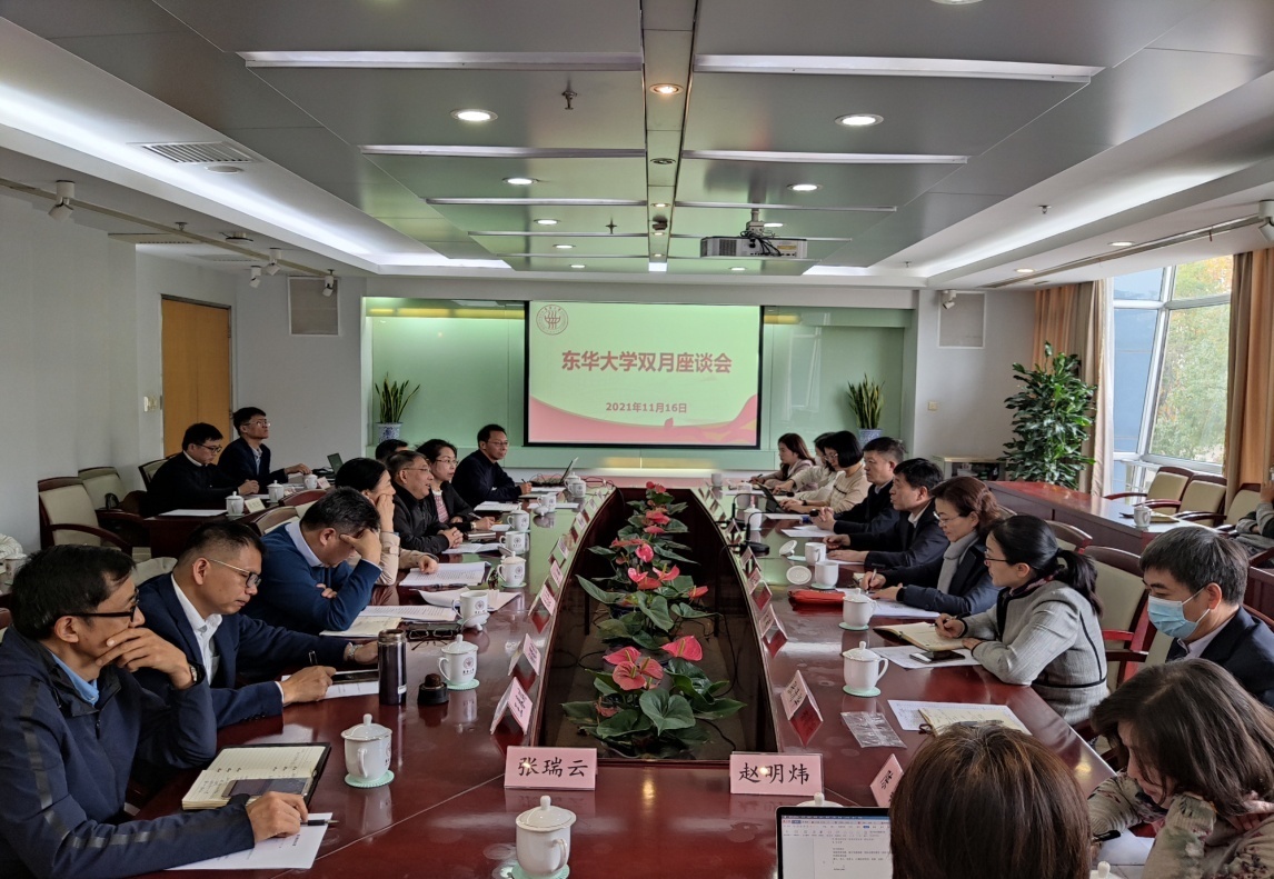 11月16日,在松江校区召开双月座谈会,畅谈“十四五”规划纲要。校长俞建勇,党委副书记崔运花,副校长、欧美同学会会长陈革出席。各民主党派和统战团体负责人,各级党外人大代表、政协委员及党外代表人士,相关职能部处负责人参会。会议由党委统战部副部长叶晓燕主持。