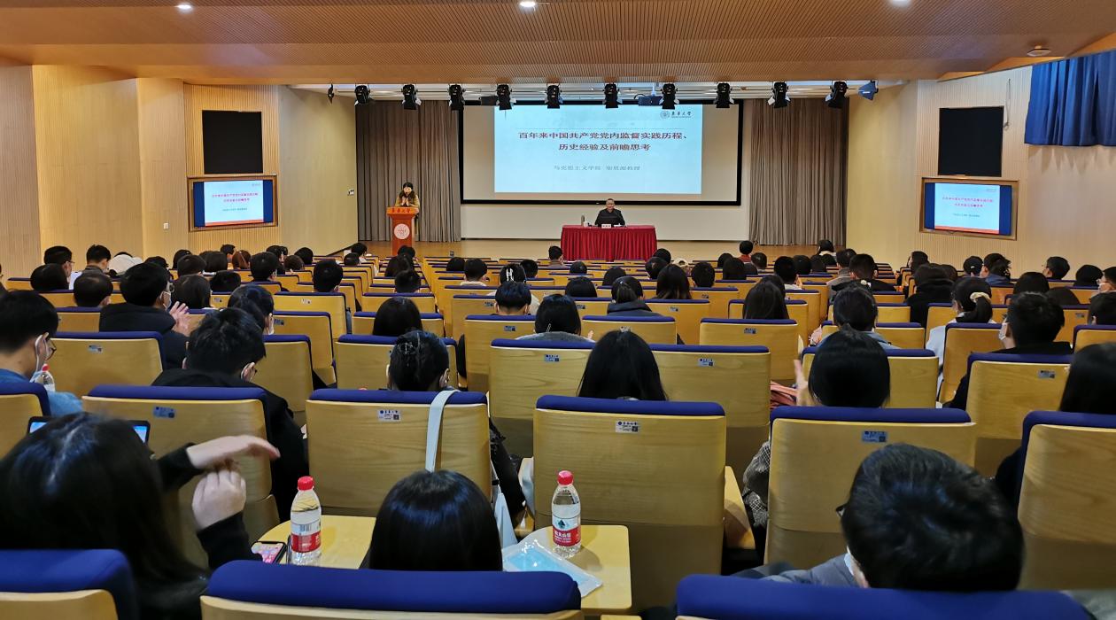 为深入学习贯彻习近平新时代中国特色社会主义思想、党的十九届六中全会和十九届中央纪委五次全会精神,进一步推动学校纪检监察巡察工作高质量发展,不断提升支部纪检委员的履职能力,11月30日下午,学校召开提升支部纪检委员履职能力专题培训会议。学校马克思主义学院邬思源教授应邀作题为“百年来中国共产党党内监督实践历程、历史经验及前瞻思考”的专题辅导报告。学校巡察办公室专职副主任、纪委办公室副主任张美芬主持培训会议。