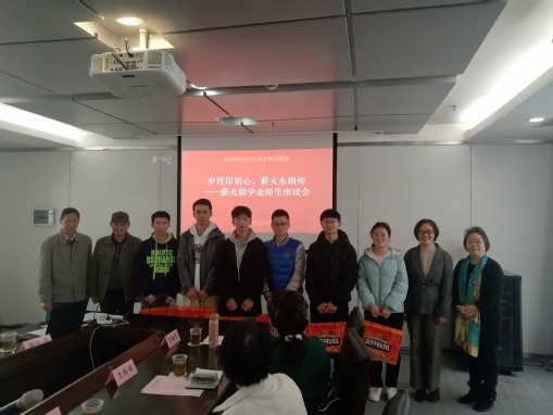 退休老师们分别作交流发言。张祖芳老师、顾莉琴老师希望同学们将个人发展与国家发展相结合,并提出了关于学习、工作的具体建议;卫玲琍老师、杨宝青老师通过东华师生回馈学校的实际案例,阐述了东华人的“薪火”精神;许海育老师、曹春城老师结合自身求学经历,鼓励同学们珍惜时间、战胜困难。同学们在发言中纷纷表示有幸得到退休老师捐资设立的"薪火"助学金资助,心中倍感温暖的同时,也深深体会到了“薪火相传”的现实意义与精神力量,将在今后的学习生活中以此为鞭策更加努力。会上举行了助学金捐赠仪式和慰问品发放仪式,还汇报了学校2021年薪火助学金评审的情况。