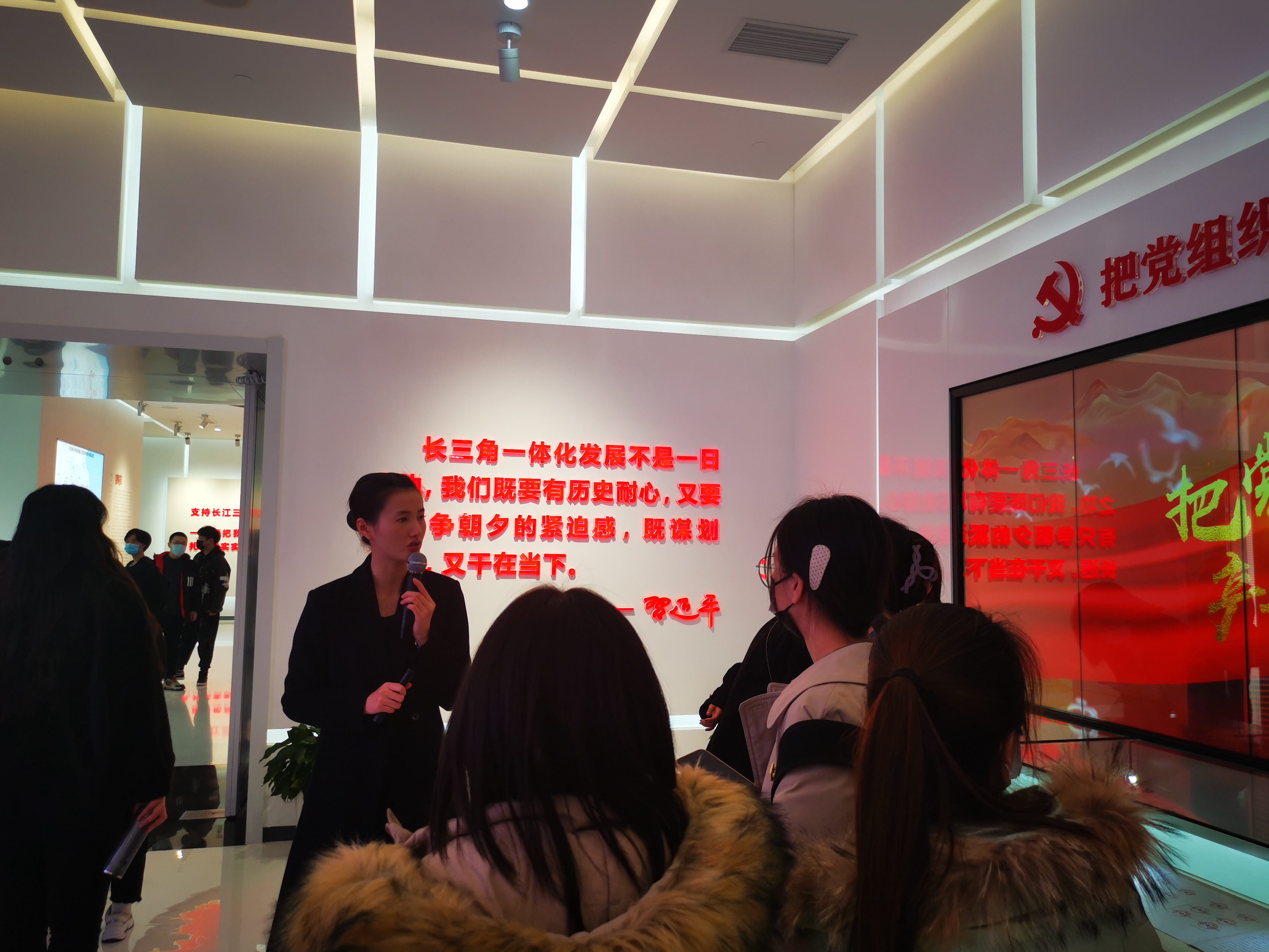 为了更好地学习贯彻党的十九届六中全会精神,亲身体会十八大以来新时代中国特色社会主义建设的伟大成就,引导学生融入区域发展大局,投身社会主义现代化建设,12月7日下午,理学院全体学生党支部参观了位于松江区的G60科创走廊规划展示馆。十九届六中全会的决议中提到“党实施区域协调发展战略,促进长三角一体化发展”,而G60科创走廊就是长三角一体化发展的一个集中展现和缩影,也是全国供给侧改革典型案例。长三角G60科创走廊辐射沪苏浙皖三省一市,形成了“九城联动”的巨大合力和发展格局。以“科创”为核心内容的G60科创走廊,通过产业链一体化,合理有效配置科创资源,由此更好地促进不同地区间产业的协同发展。
