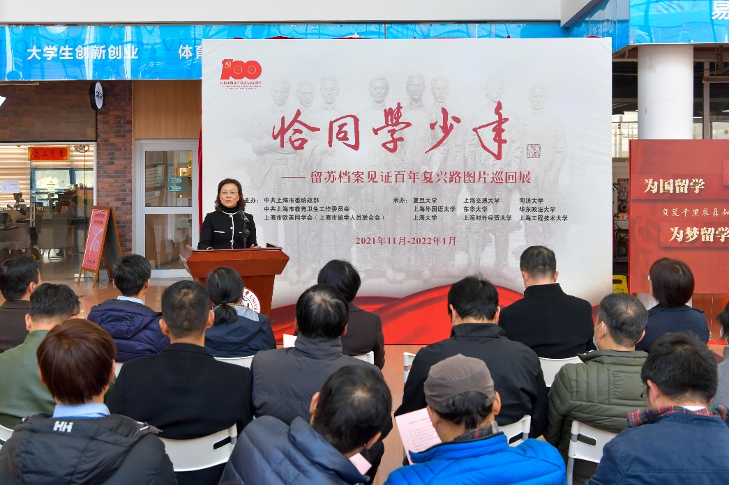 12月10日,“恰同学少年——留苏档案见证百年复兴路”图片巡回展在松江校区大学生活动中心开展。党委副书记崔运花、市欧美同学会专职副会长兼秘书长朱玲玲出席开展仪式并讲话。副校长、上海市欧美同学会东华分会会长陈革,党委常委、统战部部长朱英,侨联主席、市欧美同学会松江分会会长、松江区侨联副主席朱利民,市人大代表、民盟委员会主委王宏志,松江区人大代表、致公党委员会主委杨曙光及学校各民主党派统战团体负责人和骨干,党委宣传部、团委、档案馆等部门负责人,市欧美同学会东华分会会员、相关党支部和学生代表50余人共同参加开展仪式。
