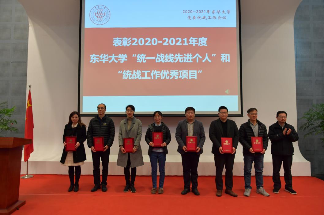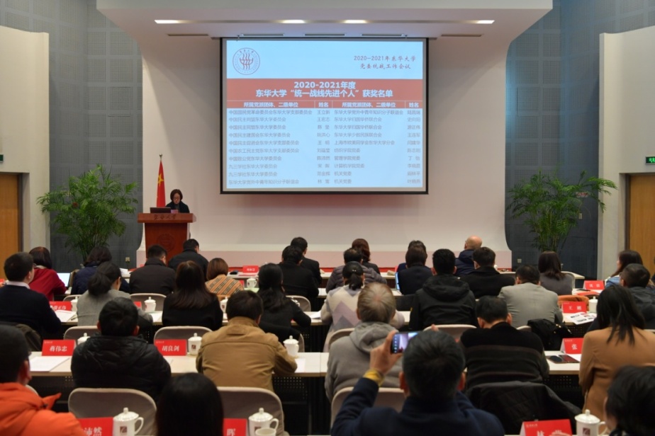 会上,刘淑慧宣读了2020—2021年“统一战线先进个人”和“统战工作优秀项目”名单。王宏志等15名党派团体成员、陈志刚等5名统战干部获评统一战线先进个人;管理学院党委“家在华阳”等5个统战工作项目获评优秀项目。
