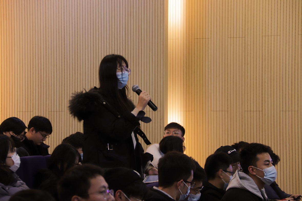 在现场互动环节,同学积极交流,分享自己的学习感悟。党员朱泽宇表示,党的领导是党和国家的根本所在、命脉所在,是全国各族人民的利益所系、命运所系,当代青年要积极加入到党的学习中去,自觉承担起中华民族伟大复兴的历史使命。党员宋文婧表示《决议》是中国共产党人牢记初心、不忘使命坚持发展中国特色社会主义的政治宣言,党将继续团结带领全国各族人民,开拓奋进,夺取新时代中国特色社会主义伟大胜利。党员唐健东表示只有不断坚定对马克思主义、共产主义的信仰,始终保持顽强意志,才能勇敢战胜各种重大困难和严峻挑战,创造出属于青年一代的历史功绩。