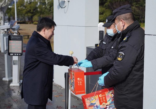 俞建勇一行赴松江校区慰问留校学生和教职员工,为值班保安、宿舍管理人员以及留校学生发放爱心大礼包,送上来自学校的关心和慰问。他先后来到校门口、学生公寓、食堂等地,与广大教职工进行亲切交谈,详细询问假期值班情况,并向为留校学生学习生活提供保障和服务的工作人员致以新春的美好祝福。他勉励留校学生利用好假期时间,不断充实提高自己,同时要做好疫情防控常态化下的个人防护,合理安排作息时间,积极锻炼身体,以饱满的精神状态迎接新学期。