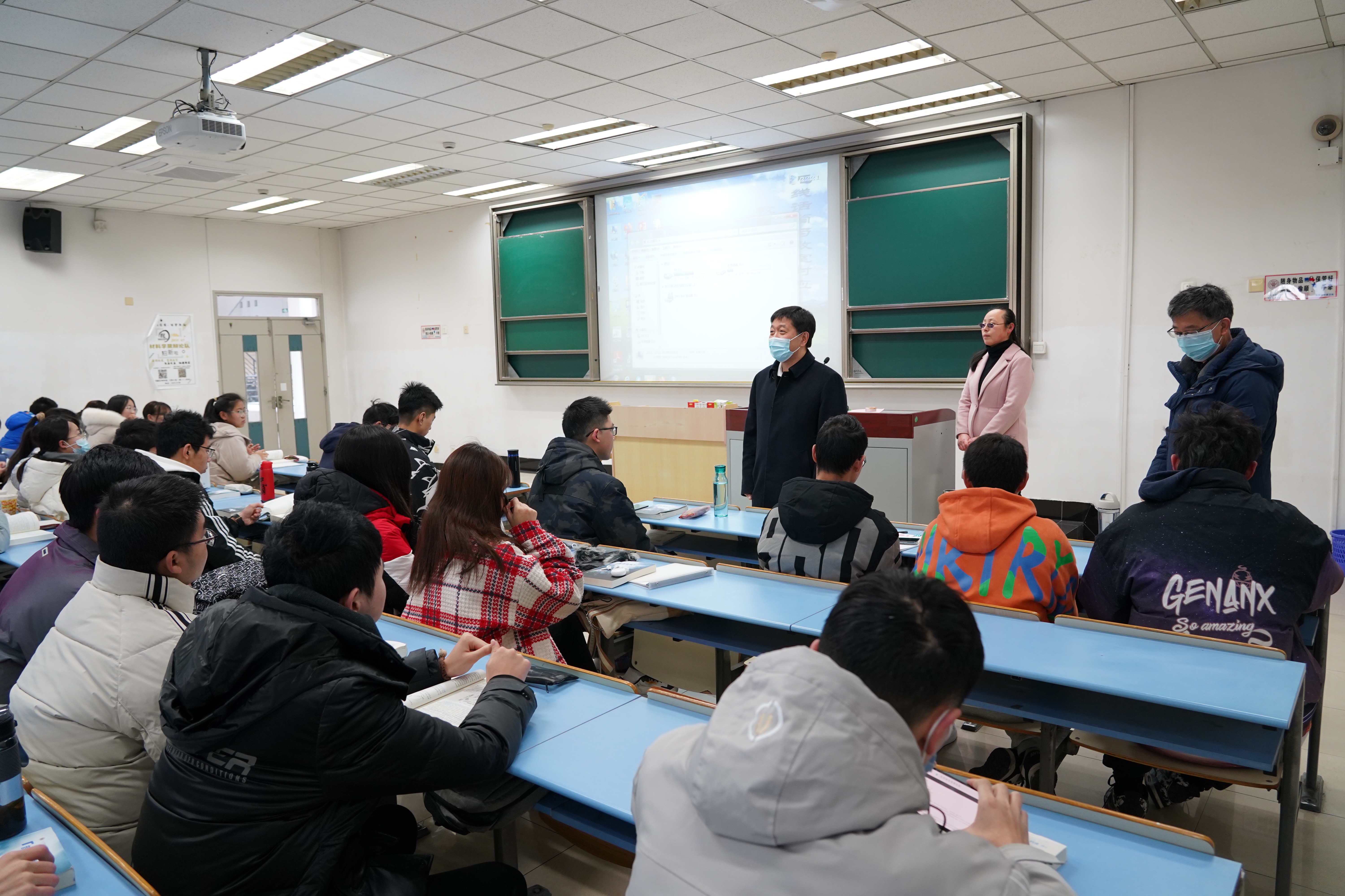 2月21日是新学期教学周的第一天,党委书记刘承功、校长俞建勇、党委副书记刘淑慧、副校长舒慧生等早早来到松江校区教学楼检查开学第一课教学情况,并在课前与师生亲切交流。