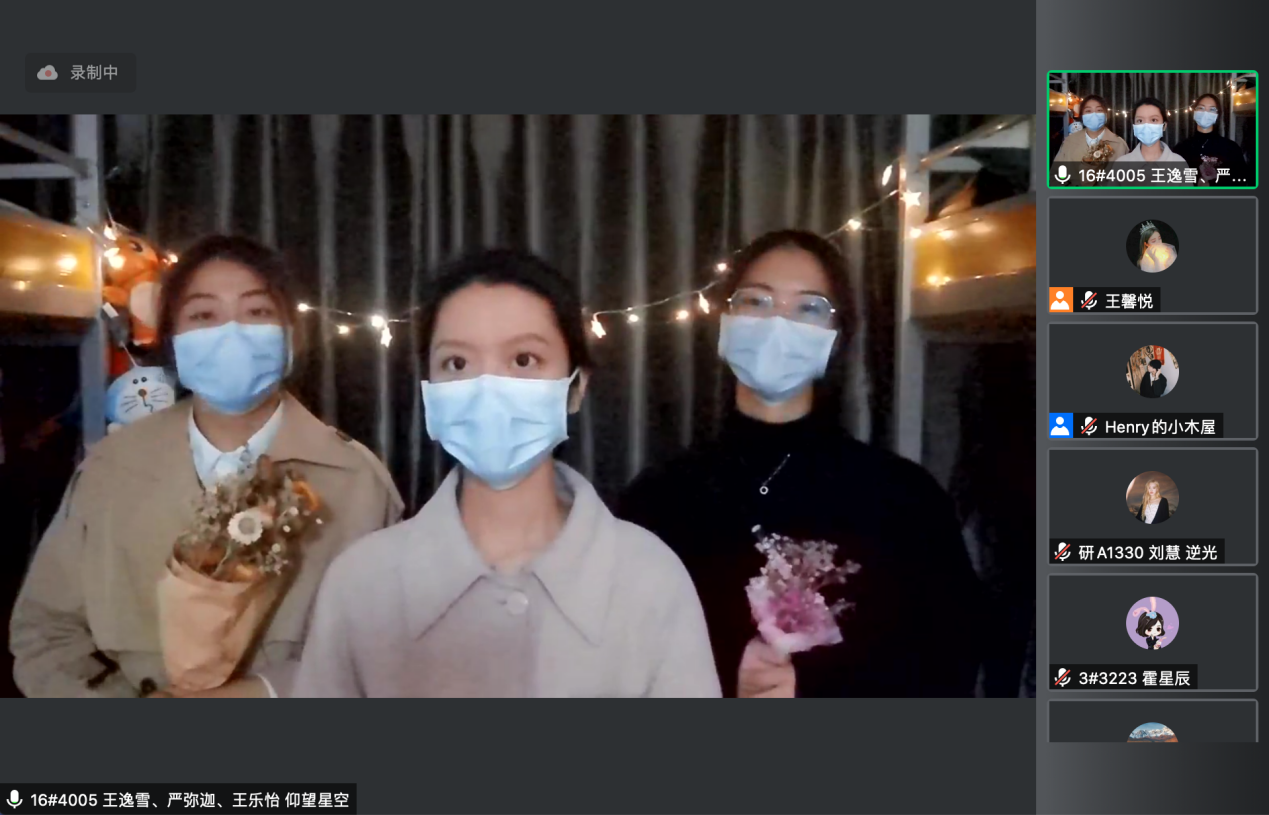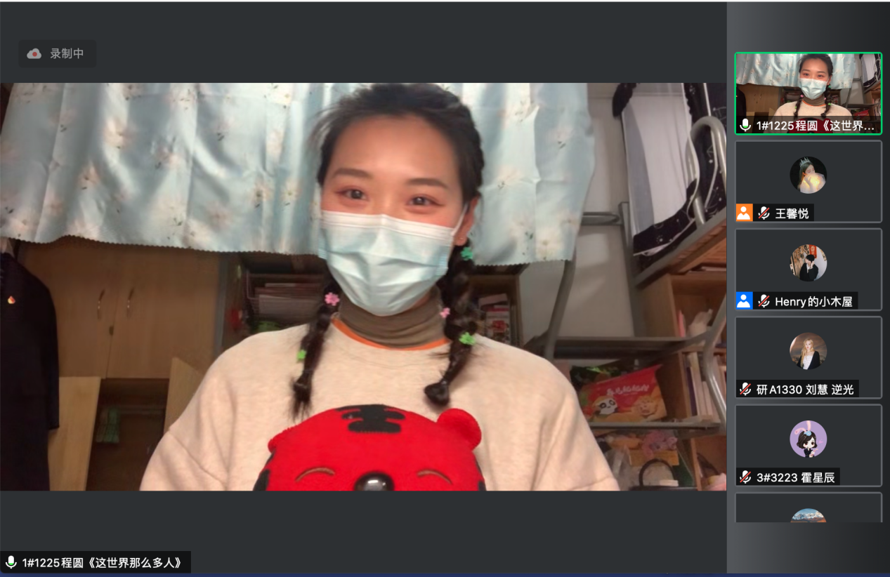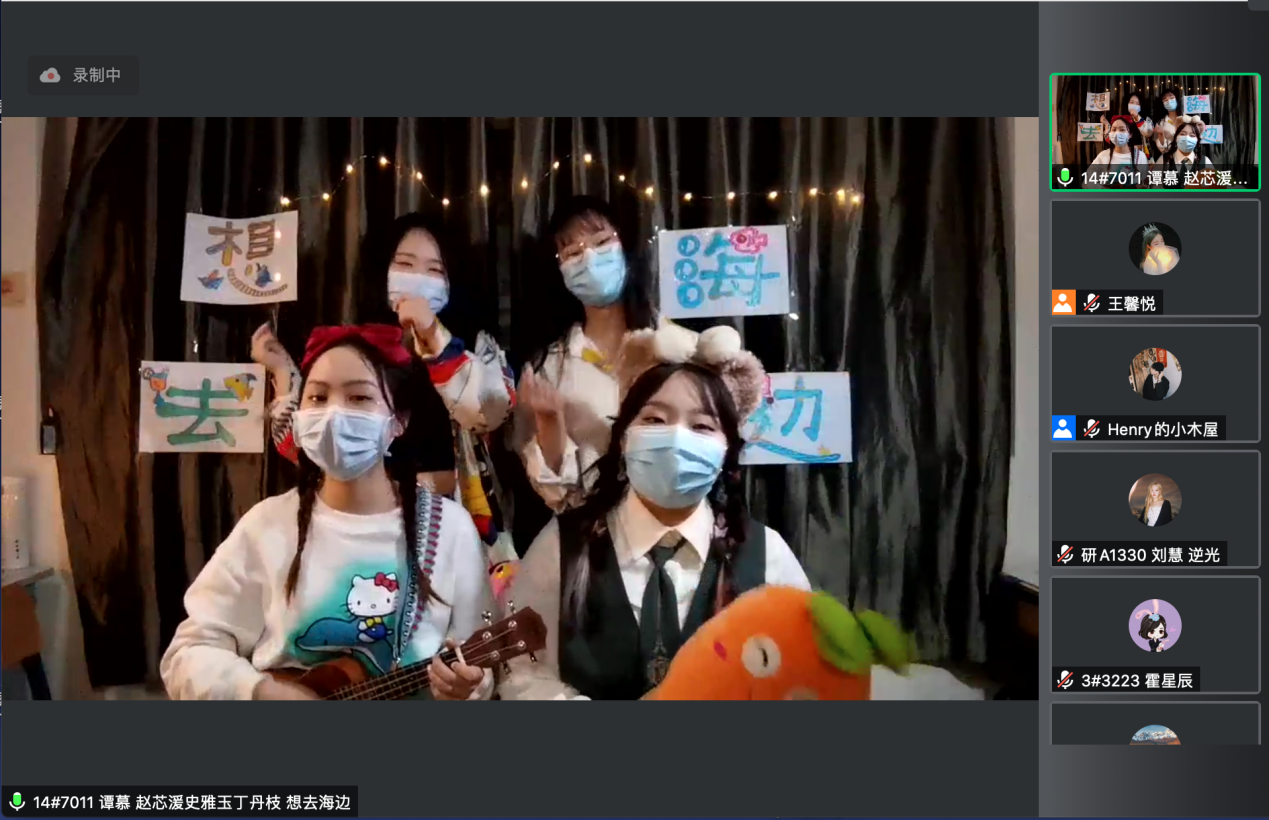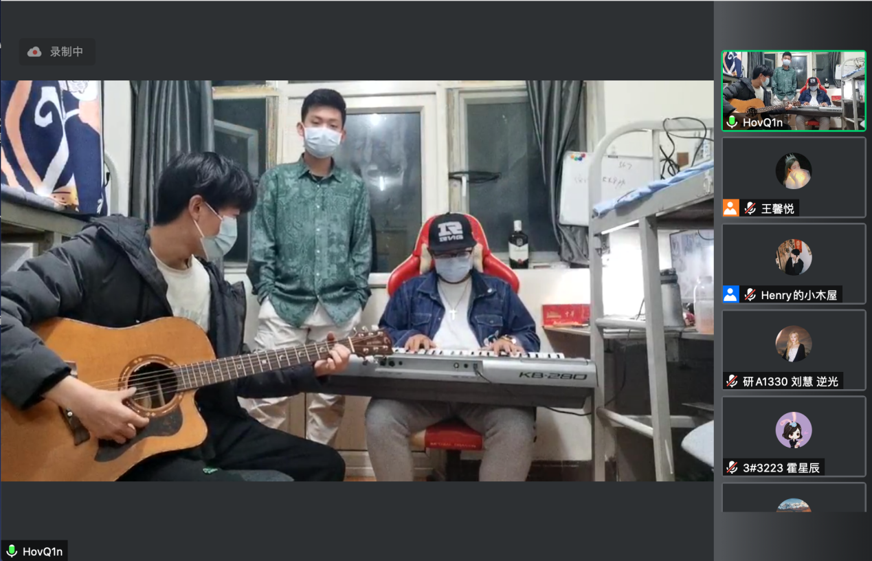 东华“汇安”CP寝室云歌会以寝室为单位,以“云端连线对唱”的形式展开。在发起网络报名仅10多个小时,就收到近80个寝室报名参与,最终来自两个校区的17个寝室“麦霸”经过选拔参加云端歌会正式演出。