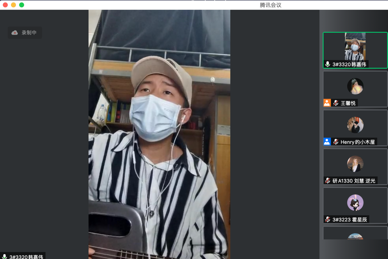 人文学院研究生韩嘉伟带来一首网络流行歌曲改编《漠河舞厅》(战疫版)。他说,“每一位‘大白’和我们一样,都是普普通通的人,都有思念、挂念,我想用这首歌向他们表达一份敬意!”
