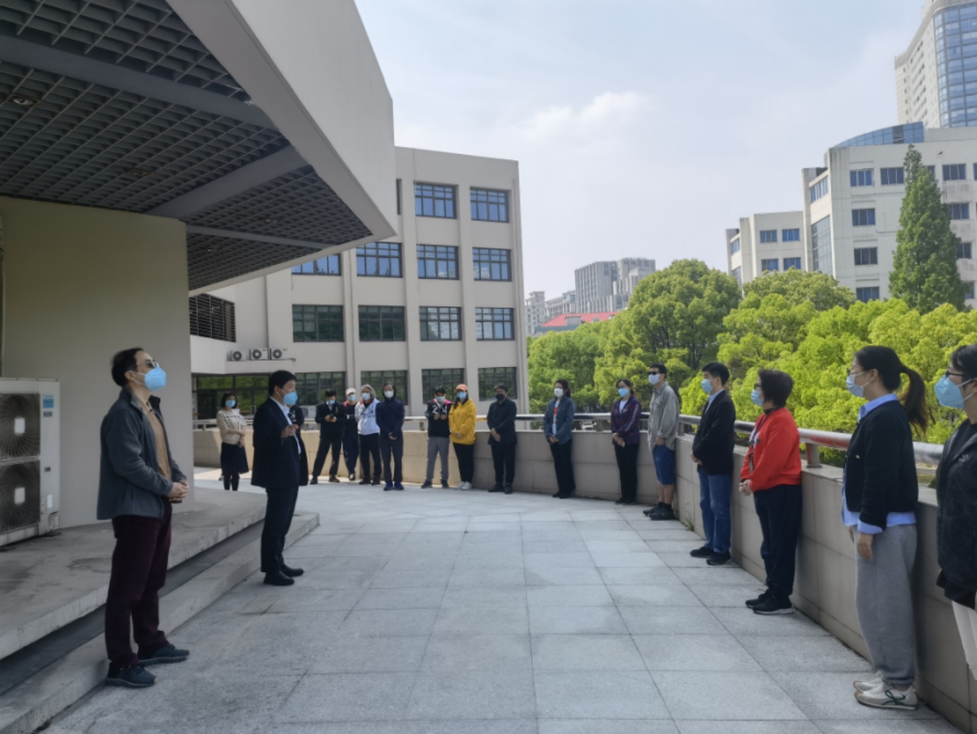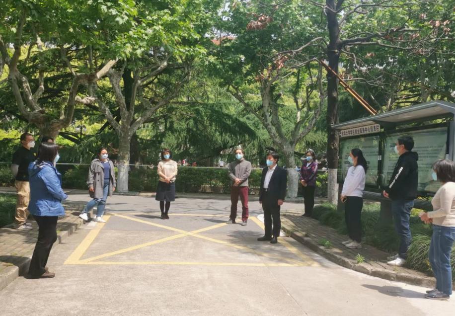 在“五一”国际劳动节当天,校长俞建勇,副校长陈南粱、李玮一行来到延安路校区各网格点,走访慰问坚守岗位一线的教职员工。俞建勇一行先后来到相关学院、食堂、校门、校医院等工作场所,向他们致以节日的问候和祝福,感谢他们为学校疫情防控和校园安全稳定作出的努力和为之付出的辛劳。组织部、宣传部、校办、保卫处、后勤服务中心等部门负责人一同参加。