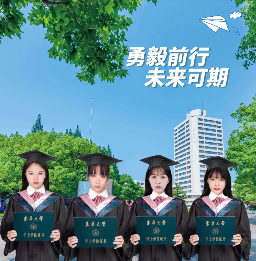 也许没有现场拨穗而显得不够完美,但满载爱与力量的视频和创意照让无数学子莞尔又泪目。学校为毕业生制作了视频《奔赴未来》及专属“云合影”,定格与同窗师长的珍贵东华记忆,纪念同学们在东华留下的足迹,祝愿大家奔赴美好的未来。