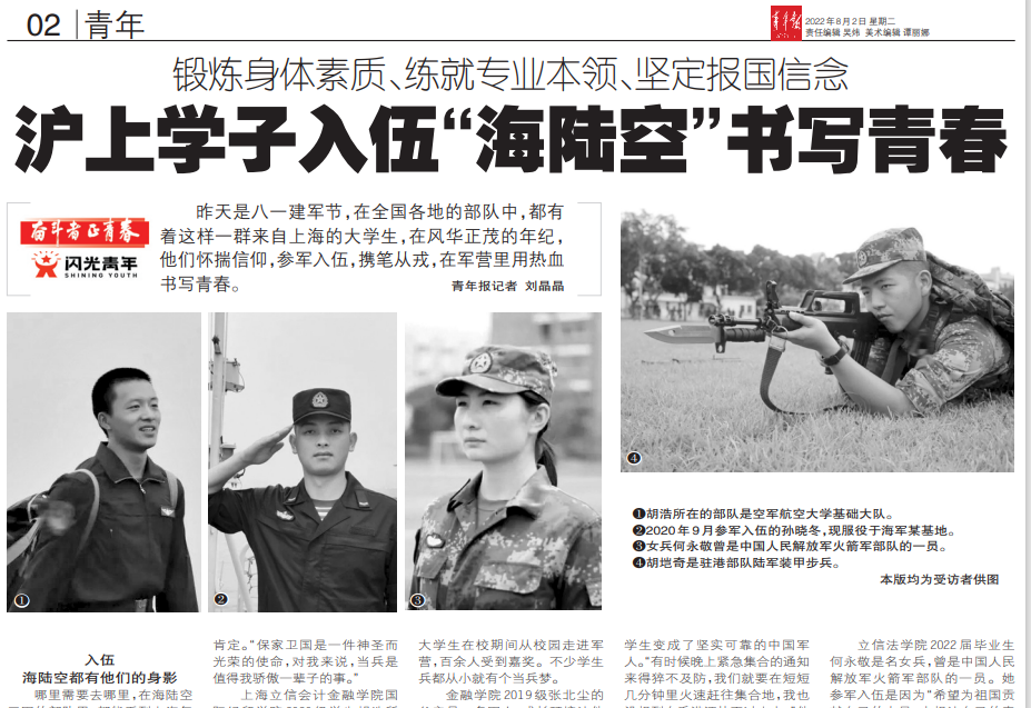 青年报:携笔从戎,海陆空三军里都有这些上海大学生的身影