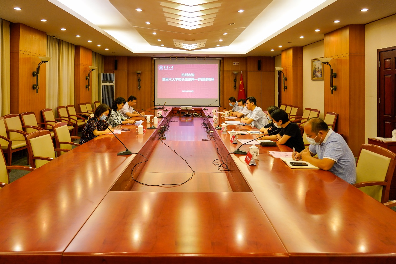 张爱萍代表塔里木大学对十多年来在教师支援、学生培养、科学研究等方面给予的扎实帮扶与辛勤付出表示感谢。她表示,通过新一轮的对口支援,塔里木大学一定将不断取得新的突破。面对新时代新任务,相信两校一定能落实好习近平总书记在第三次新疆工作座谈会上的重要讲话精神和党中央关于新疆工作的决策部署,为南疆教育发展增添新的动能。
