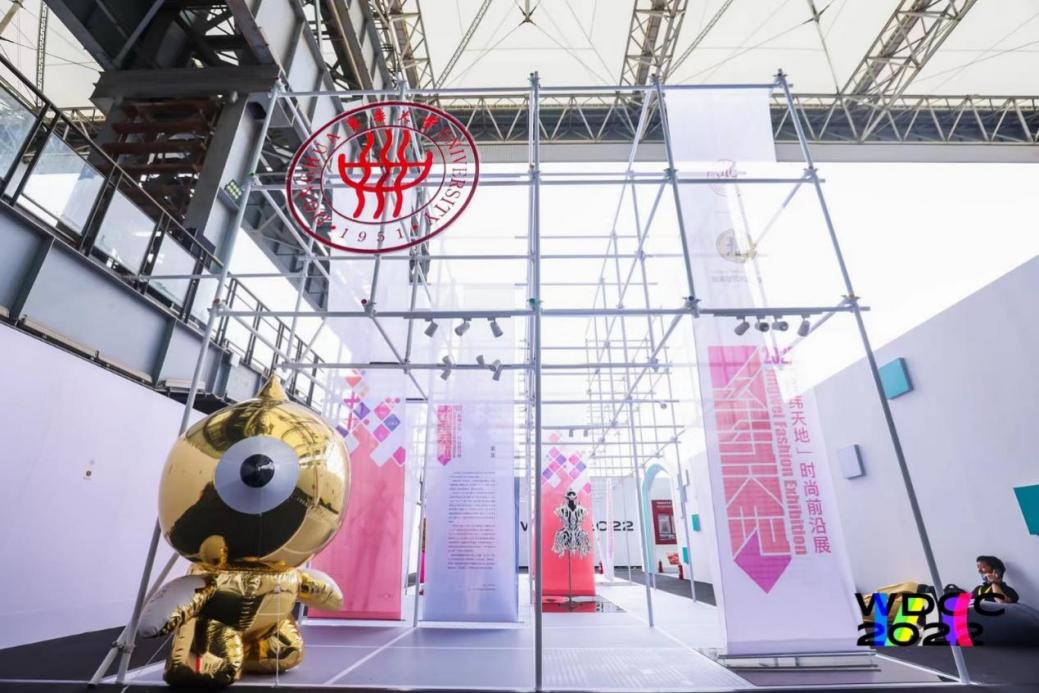 “经纬天地”时尚前沿展的展区前人流如织。展览入口处的“东华小锐”IP卡通形象可爱、灵动,引得参观者拍照打卡。“东华小锐”以鸾凤形象,以宋代成语“啐啄同机”为延伸,这是学校师生专门为本次活动设计制作。它代表着一批又一批东华新锐设计师,破壳而出,他们是植根于中国的传统文化土壤,面向未来不断探索的青春力量。