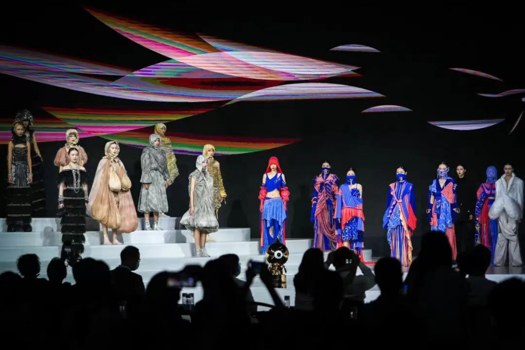 来自的12名新锐设计师带着70余套原创作品将“传承与经典再造”“自然与可持续发展”“未来与数字潮流文化”的理念演绎得淋漓尽致。本次秀演突破传统的服装走秀表演模式,结合现场数字媒体技术,以“山”“水”“光”三幕展开,打造一幕虚实相间、未来复古,融声、光、画、表演为一体的创新型综合设计表达。虚拟与现实交融,传统与科技共生,连接设计的现在与未来,带来无限的灵感与想象空间。