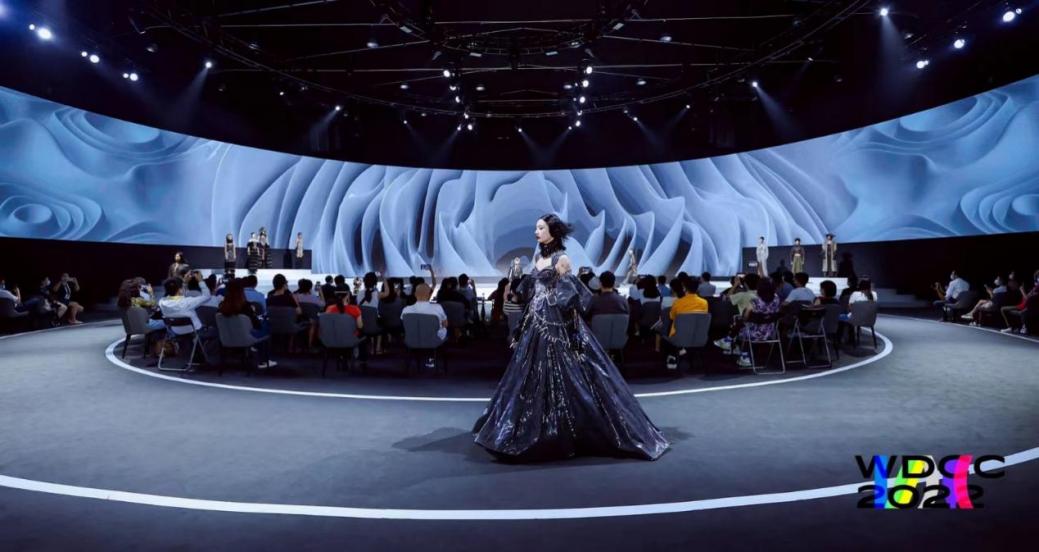 传统的T台化身成舞台之上“山丘”与“湖泊”,曲线的外形仿佛水面泛起的圈圈涟漪,叠起的高度仿佛层层的山峦。舞台背后是一块长80米、高5米、270度的环形巨型大屏幕,置身其中,就像打开了进入平行时空的元宇宙大门,体验感十足!9月16日下午,《衣尚东方》——2022新锐设计师创意时装作品发布在世界设计之都大会主会场拉开大幕。
