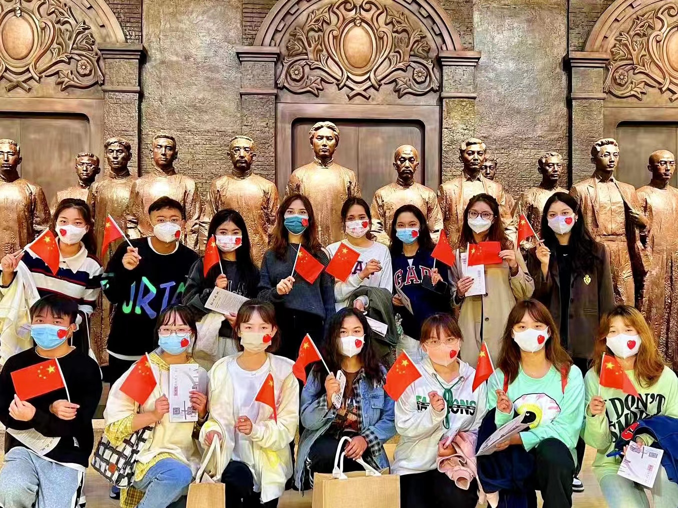国庆放假期间在严格遵守疫情防控相关规定基础上,少数民族学生分小组开展红色畅读和红色观影活动并在“微信群”分享自己的心得体会,将红色文化贯穿于国庆小长假。充分利用上海丰富的红色资源,开展“寻访红色地标”主题打卡,参观中共一大会址纪念馆和中共二大会址,寻觅英雄足迹,触摸着革命前辈们生活战斗过的历史遗迹,走一路、学一路、思一路、悟一路,在源头实景中感悟革命先烈们的丰功伟绩。“在学校听老师讲,看过相关资料,国庆期间实际来到党的诞生地,我的感受只能用震惊和感动来形容。”预科2022班学生程佳怡如是说。