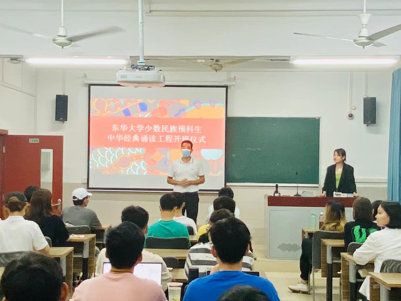 为引领少数民族学生更好地熟悉诗词歌赋、亲近中华经典,更加广泛深入地领悟中华思想理念、传承中华传统美德、弘扬中华人文精神,9月22日晚少数民族预科生中华经典诵读工程(第二期)在我校延安路校区开班。中华经典诵读工程(第二期)在第一期实践经验的基础上,依托“国家语言文字推广基地”和朗诵团为少数民族预科生精心打造,引导少数民族学生在经典诵读中学习优秀传统文化、革命文化和社会主义先进文化。
