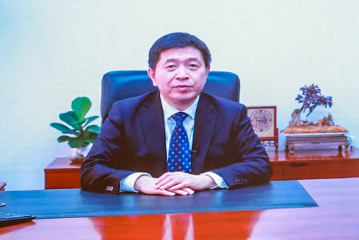 俞建勇线上致欢迎辞,他指出,在坚持“五育”并举、深化体教融合、促进学生健康发展的时代背景下,落实好、发展好大学生体育工作是实现立德树人根本任务,提升学生综合素质的基础性工程,对培养学生爱国主义、集体主义、社会主义精神和奋发向上、顽强拼搏的意志品质具有重要作用。他向与会人员介绍了学校以体育人、深化体育教育改革创新取得的成绩,并表示,学校将以中国大学生体育协会手球分会落户东华为契机,认真落实中国大学生体育协会安排的各项工作任务,充分发挥联系广大会员学校的桥梁纽带作用,为各会员学校打造公平、阳光、健康的交流平台,为我国体育事业、教育事业发展做出新的更大贡献。