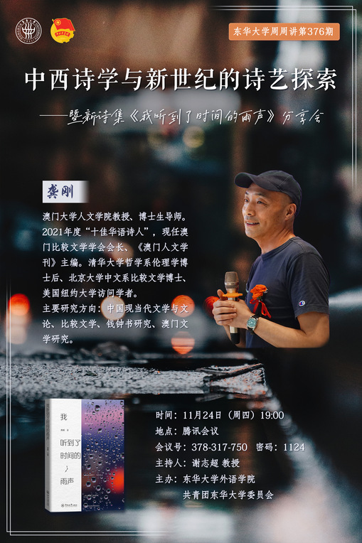 讲座主题:中西诗学与新世纪的诗艺探索暨新诗集《我听到了时间的雨声》分享会