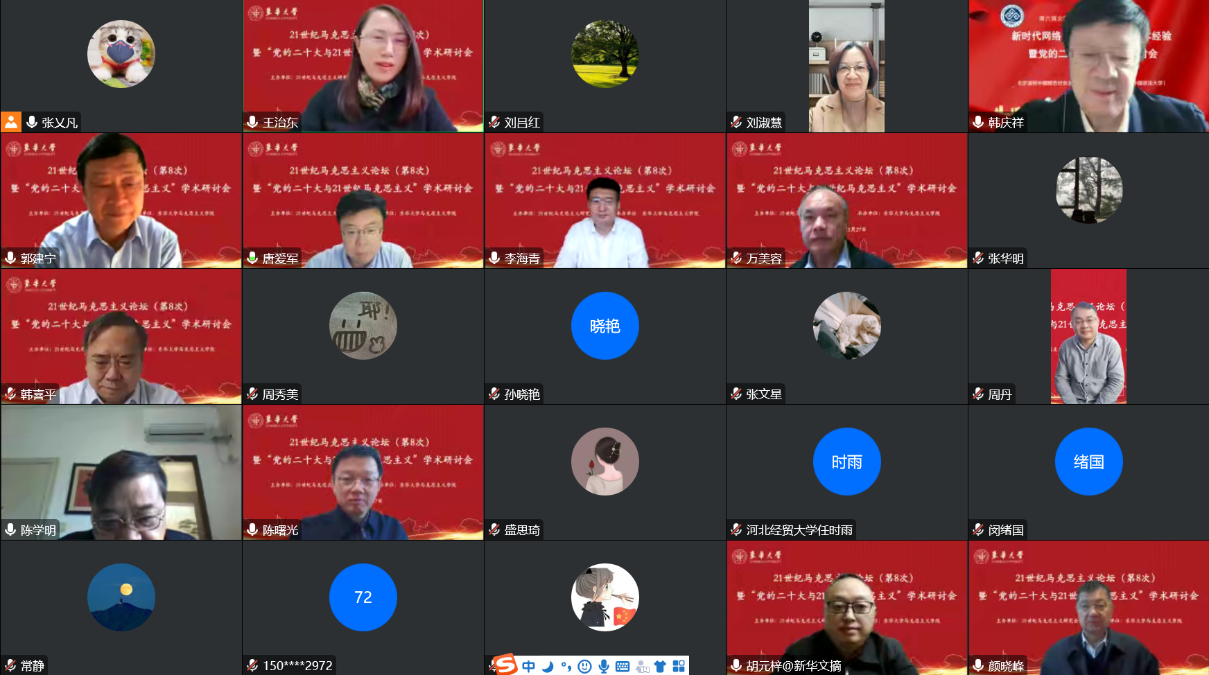 近日,为深入学习宣传贯彻中国共产党第二十次全国代表大会精神,由21世纪马克思主义研究会主办、马克思主义学院承办的21世纪马克思主义论坛(第8次)暨“党的二十大与21世纪马克思主义”学术研讨会在线上召开。来自中共中央党校(国家行政学院)、中国社会科学院、上海社会科学院、北京大学、复旦大学、上海交通大学、天津大学、吉林大学、华中师范大学、郑州大学等各单位的80多名师生齐聚云端参会。15位专家学者作主旨发言,围绕党的二十大精神与新时代马克思主义理论研究重要问题展开深入研讨和交流。